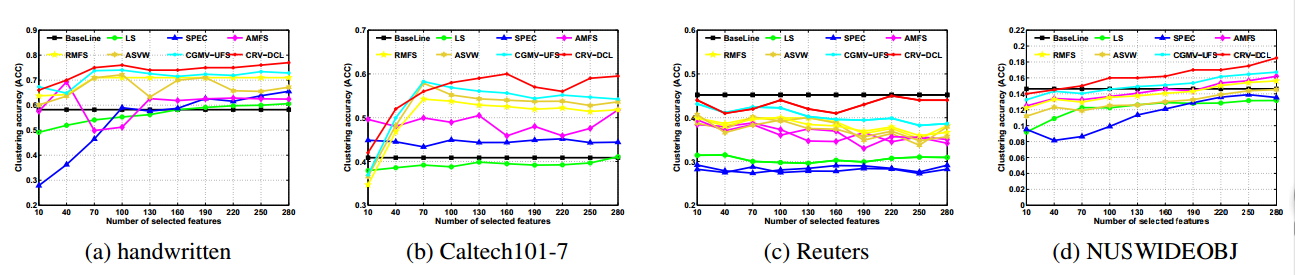 该论文方法CRV-DCL得到的特征在不同数据库上的聚类精确度