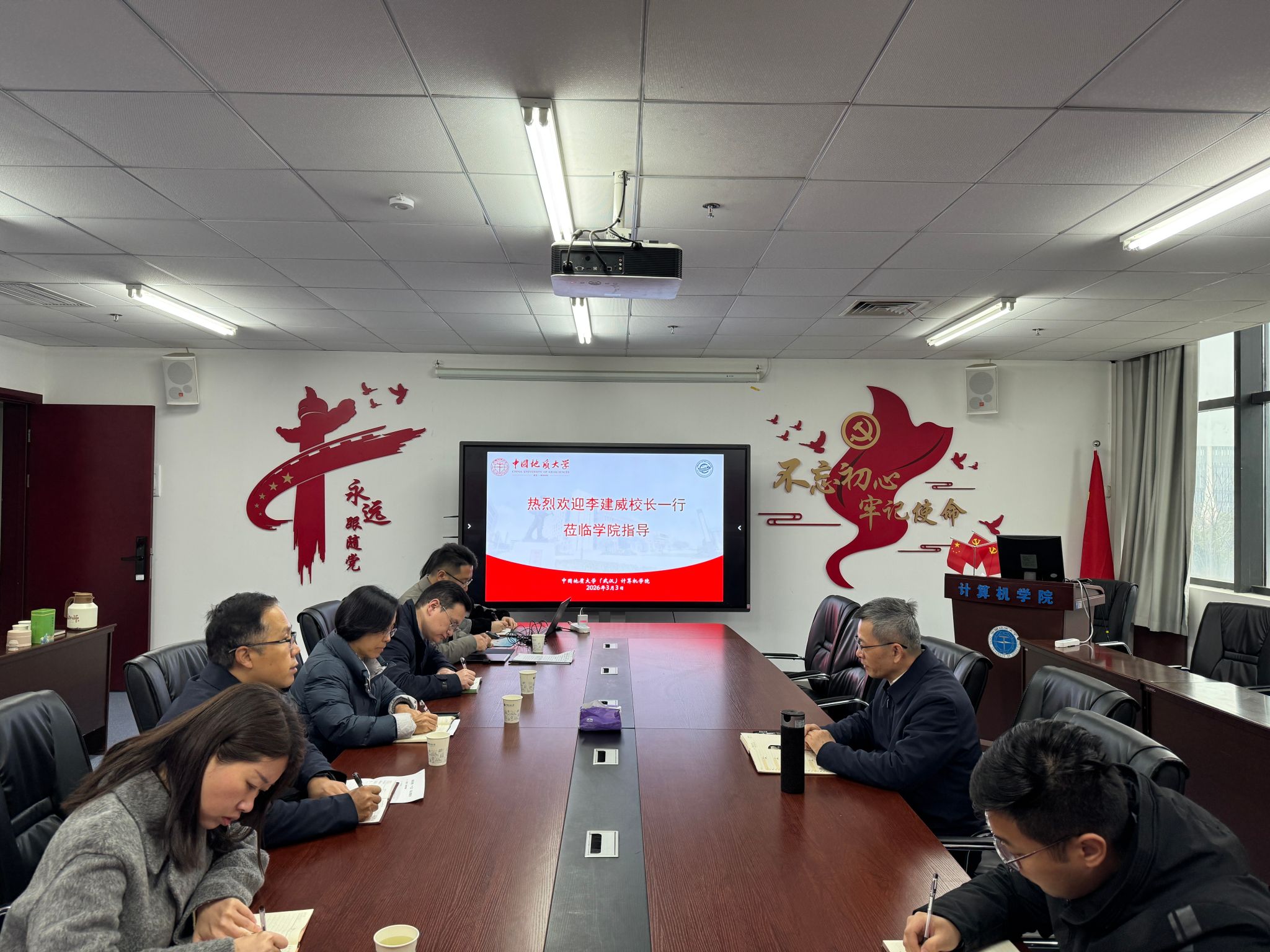 李建威董事长认真听取了汇报,并对相关工作细节进行了深入细致的了解。他充分肯定了公司在“十四五”期间取得的成绩,并就公司如何在“十五五”期间继续发挥学科优势、支撑公司“双一流”建设与高质量发展提出指导意见。他强调:要坚守立德树人根本任务,高度重视员工思政教育与心理健康,通过优化培养方案、更新教学内容、引入前沿技术,打造高水平课程体系,培养“又红又专”的时代新人。要实施人才强院战略,通过“以才引才”及“传帮带”机制,让青年教师有归属感和成就感;落实全员育人责任制,鼓励导师深度参与思政工作,形成“三全育人”合力。要聚焦团队建设重点,全力攻坚软件工程博士点申报,拓展学科攻关空间。要深化产教融合,坚持“入主流、强特色”,紧跟人工智能前沿,深度融合地质、资源等优势学科,拓展与头部企业合作,争取重大项目,提升成果转化效能。要筑牢安全防线,严守意识形态阵地,防范网络风险;紧盯实验室用电、数据及设备安全,杜绝火灾隐患;做实毕业生就业指导与心理疏导工作,确保公司大局和谐稳定。