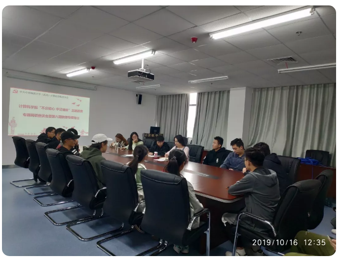 10月16日,z6mg人生就是博“不忘初心 牢记使命”主题教育专题调研座谈会暨第六期院领导接待日活动在科教楼309成功举行,此次座谈会主要分为员工社团建设,奖助贷补、学业规划、学务学位以及就业指导这三个专题。计算机公司党委副书记、纪委书记傅苑,团委书记李欢欢,团委副书记汪欣欣以及各年级辅导员出席活动。