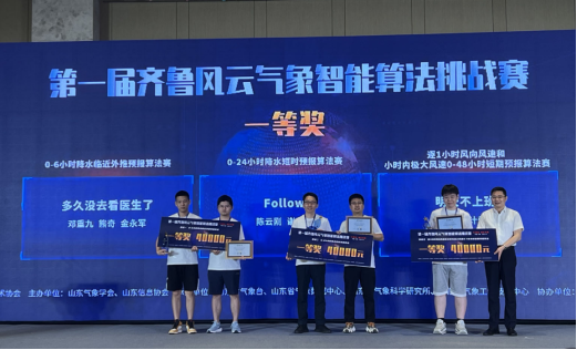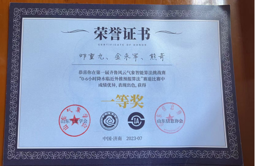 7月15至16日,由山东气象学会、浪潮数字(山东)建设运营有限公司、山东信息协会联合主办的第一届齐鲁风云气象智能算法挑战赛决赛及颁奖仪式在济南完美收官。历经初赛、复赛、决赛的层层选拔和激烈角逐,公司教师刘佳指导的研究生邓重九、金永军、熊奇组成的团队获得“0-6小时降水临近外推预报算法”赛道一等奖。