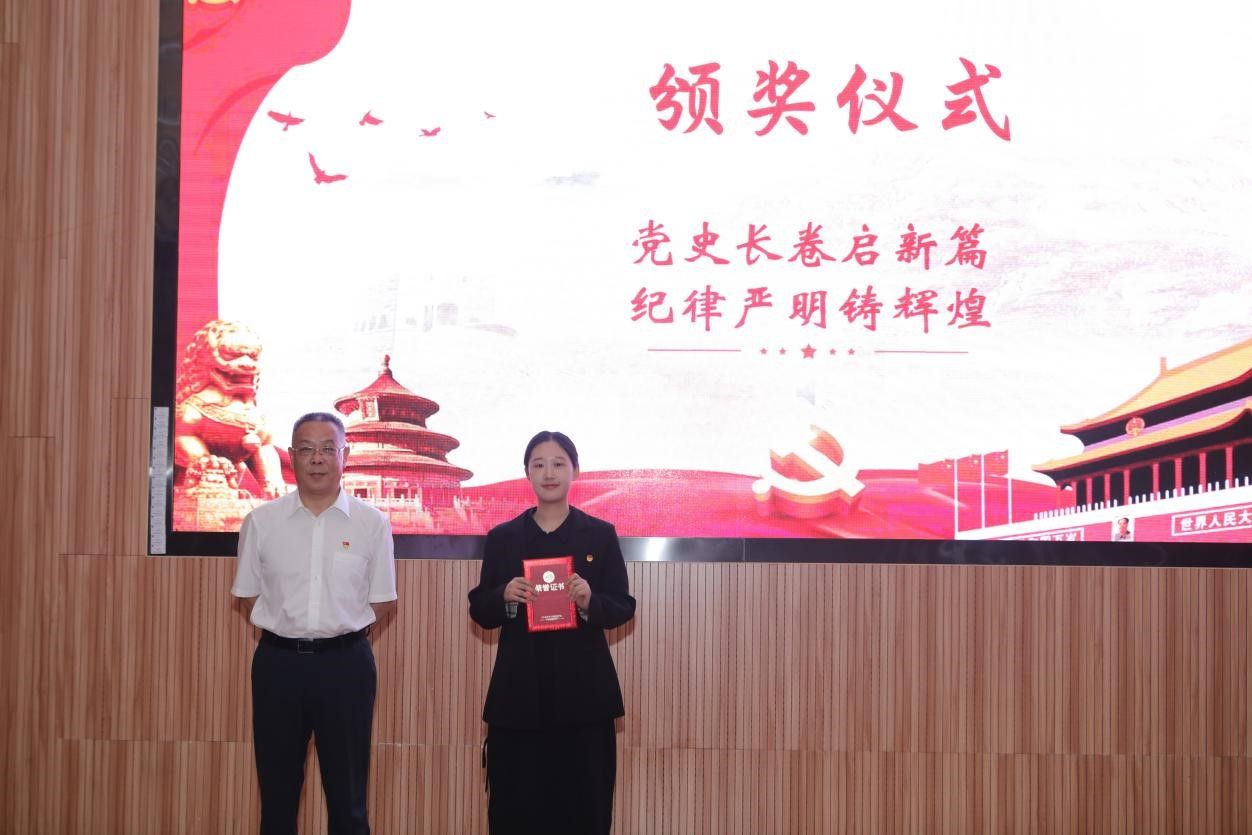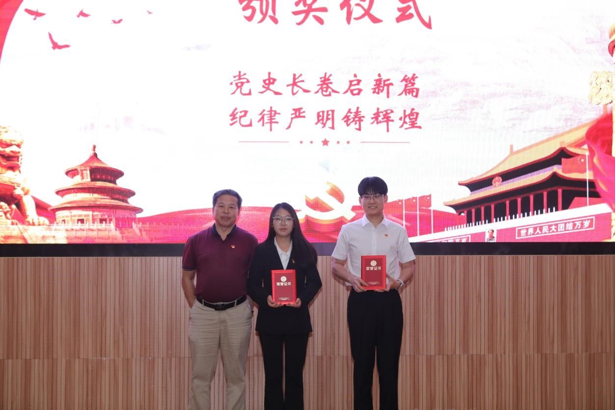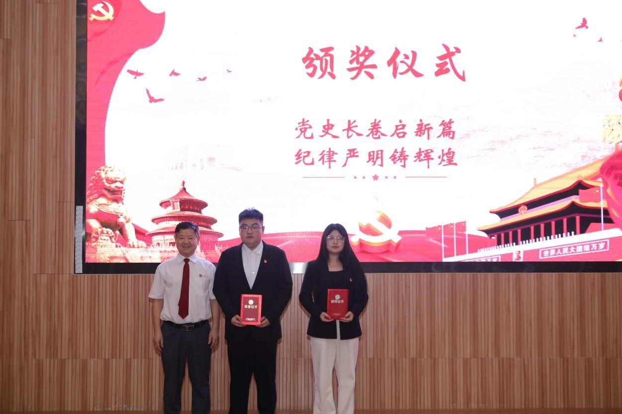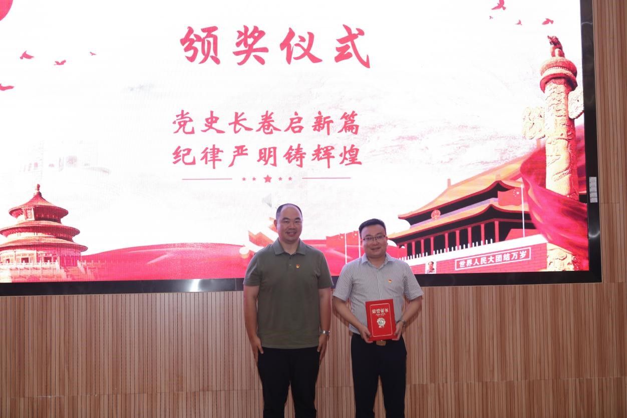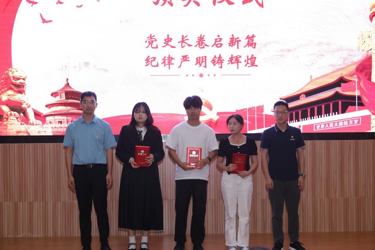 在示范党课环节,马钊老师以《清风徐来,廉洁花开》为题,深入浅出地阐述了廉洁自律的重要性,引导大家从现在做起,从身边小事做起,从遵守考试纪律、坚持推优评奖原则等日常学习工作生活做起,扣好廉洁自律“第一粒纽扣”。员工代表肖飞龙以《始终坚持严的基调 全面加强纪律建设》为题,带领大家深刻学习领悟习近平总书记关于党的自我革命的重要思想。李国昌书记原原本本领学了《中国共产党纪律处分条例》中关于政绩观的修订内容,分享了习近平总书记在延安梁家河、河北正定等地工作期间造福人民的故事,希望青年员工自觉学习党规党纪,切实践行造福人民的政绩观,并在新时代的新征程上不断建立新功。示范党课结束后举行了隆重的颁奖仪式。