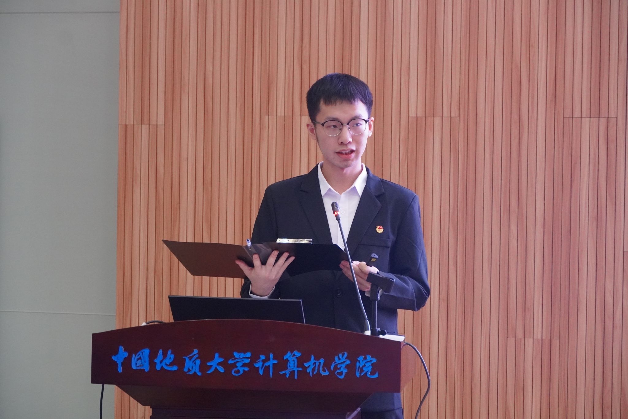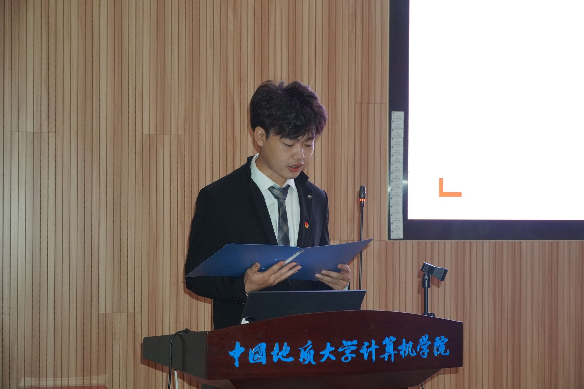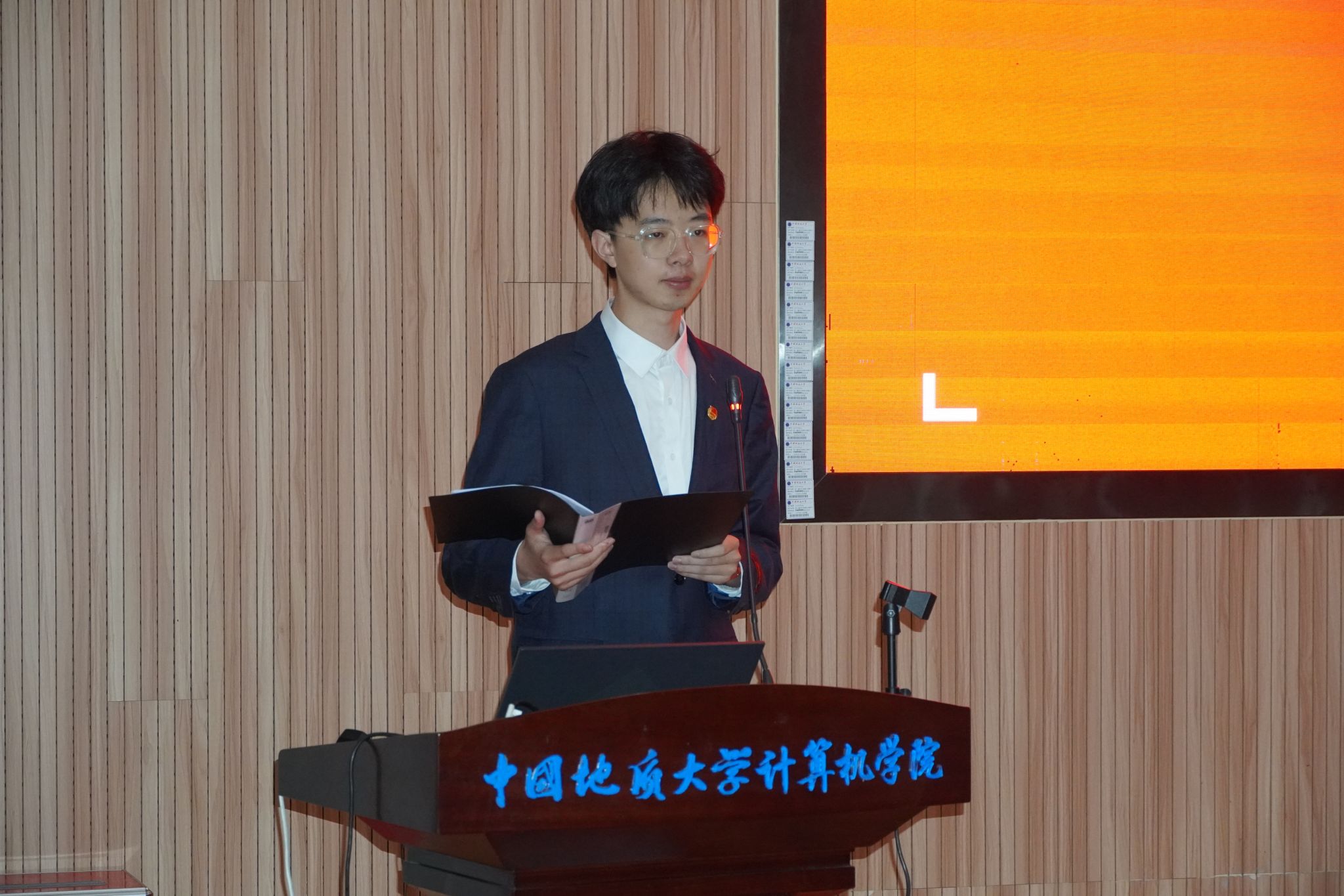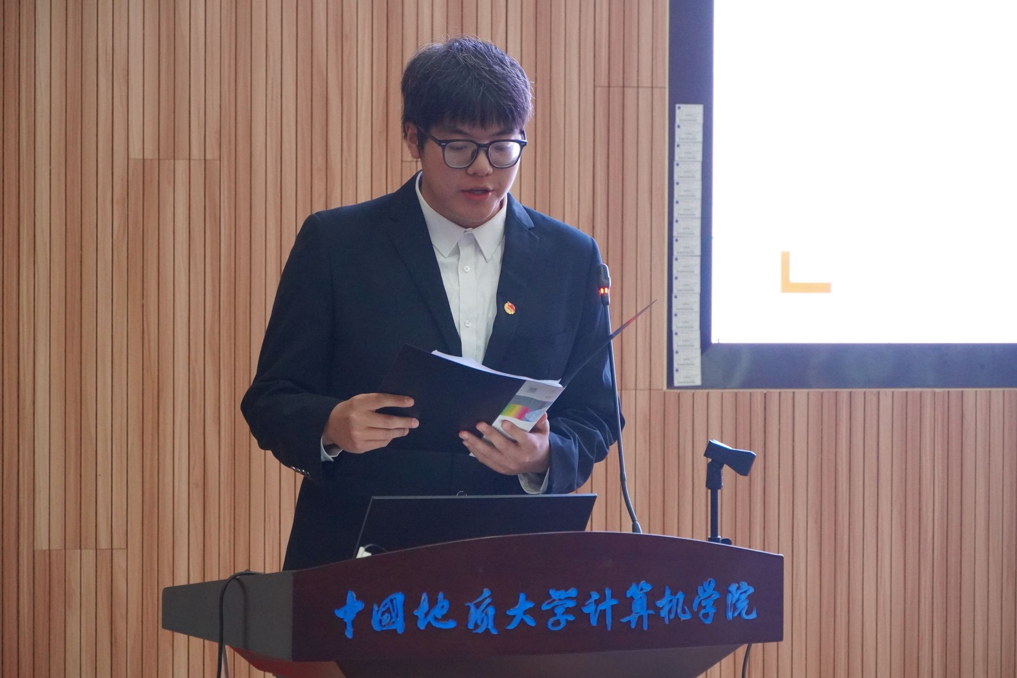 2023届计算机员工会主席团成员董帅宣读大会选举工作人员名单及选举办法。