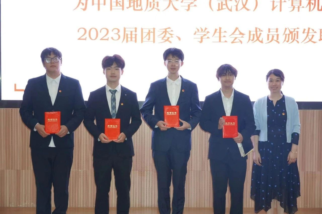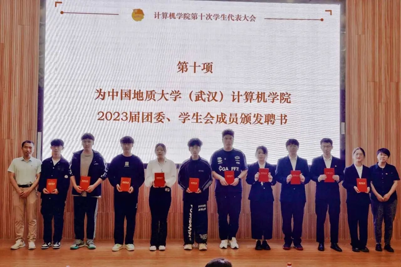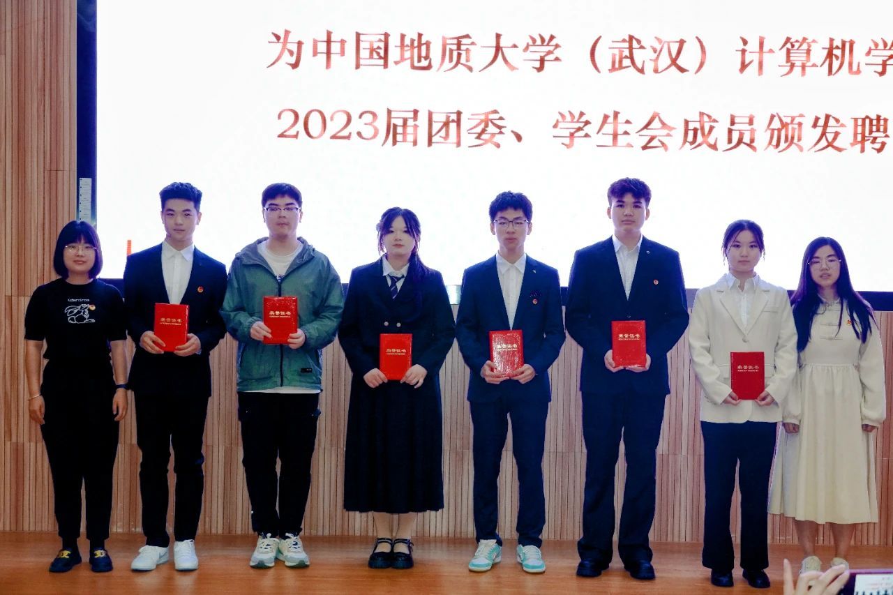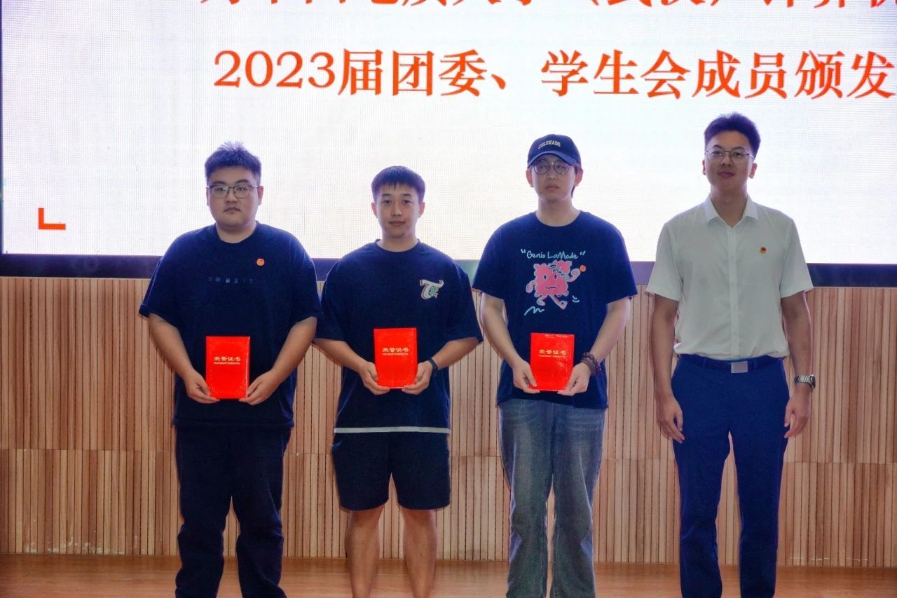 谭文博老师为员工会顾问颁发聘书,闫维蓉,刘佳丹老师为 2023 届员工会成员颁发聘书,王太茂,李欢欢老师为 2023 届团委成员颁发聘书, 林小艳老师为2023届团委员工会主席团成员颁发聘书。