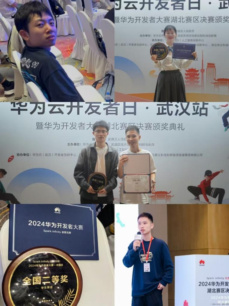 2024年10月15日,华为云开发者日·武汉站暨华为开发者大赛湖北赛区决赛颁奖典礼成功举办,公司计算机科学与技术专业的李航、夏嘉键、余雅琼、吴家豪等四人组成的“还好队”,获得了华为开发者大赛员工赛道全国二等奖。