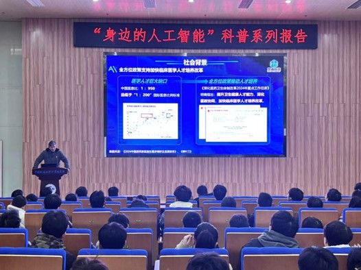 李程俊副教授报告题目是“生成式人工智能在医疗培训中的应用”。临床问诊是所有科室医生的必须培养点,但临床疾病诊断学习复杂性高,员工难以自学。人工智能是开启新时代医疗教育的“金钥匙”,人工智能模拟问诊培训能自适应变换问诊场景,具有系统性和灵活性。临床问诊培训需要跨越理论到实践的鸿沟,李老师对比了“ChatGPT”和生成式人工智能产品在临床问诊功能中的表现,结合实际场景数据带领大家探究人工智能是如何完成培训+考试+打分一系列教学过程。