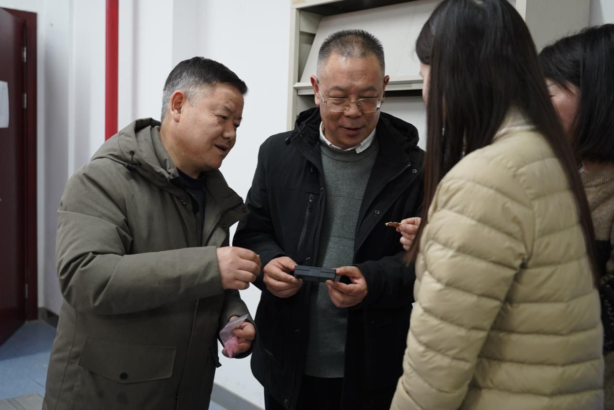 公司党委副书记唐忠阳、公司党委书记李国昌、院分工会主席梁庆中亲临现场,慰问并参与了这场文化盛宴,为女教师们送去了节日的温暖与关怀。“每一片螺钿都是时光的切片”,唐书记轻抚盒中流光溢彩的螺钿薄片,将承载着殷切祝福的材料递到女教师们手中。