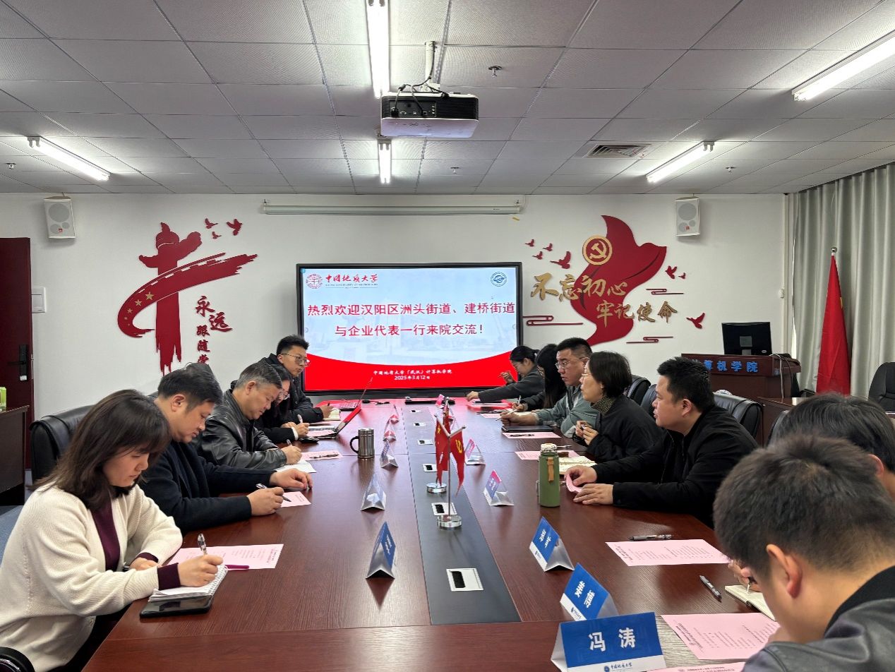 3月12日上午,汉阳区洲头街道、建桥街道领导与企业代表来院,就校企合作、人才培养、产教融合等方面进行调研座谈。洲头街道办事处主任汤雯、建桥街道办事处主任王波、洲头街道办事处副主任吾云巴特尔、武汉海量数据教育行业负责人冯涛等政府和企业领导,公司党委书记李国昌、副经理陈云亮、数据科学与大数据系党支部书记宋维静、本科教学秘书李婷及辅导员代表参加会议。李国昌主持会议。
