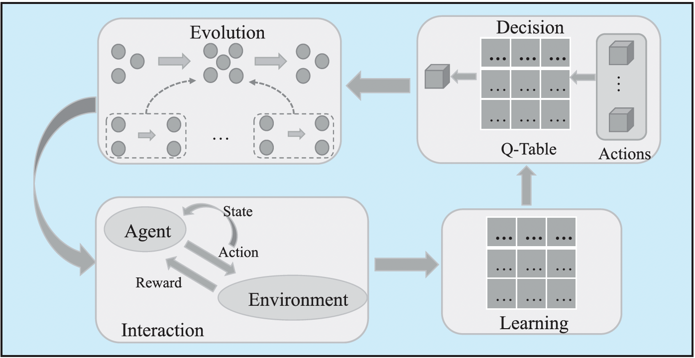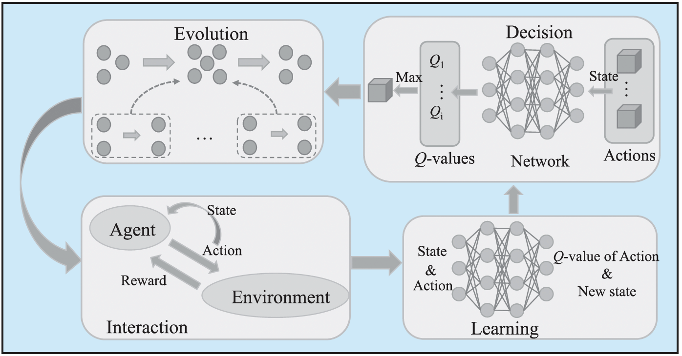 图4 作者提出的强化学习/深度强化学习与演化互动模型