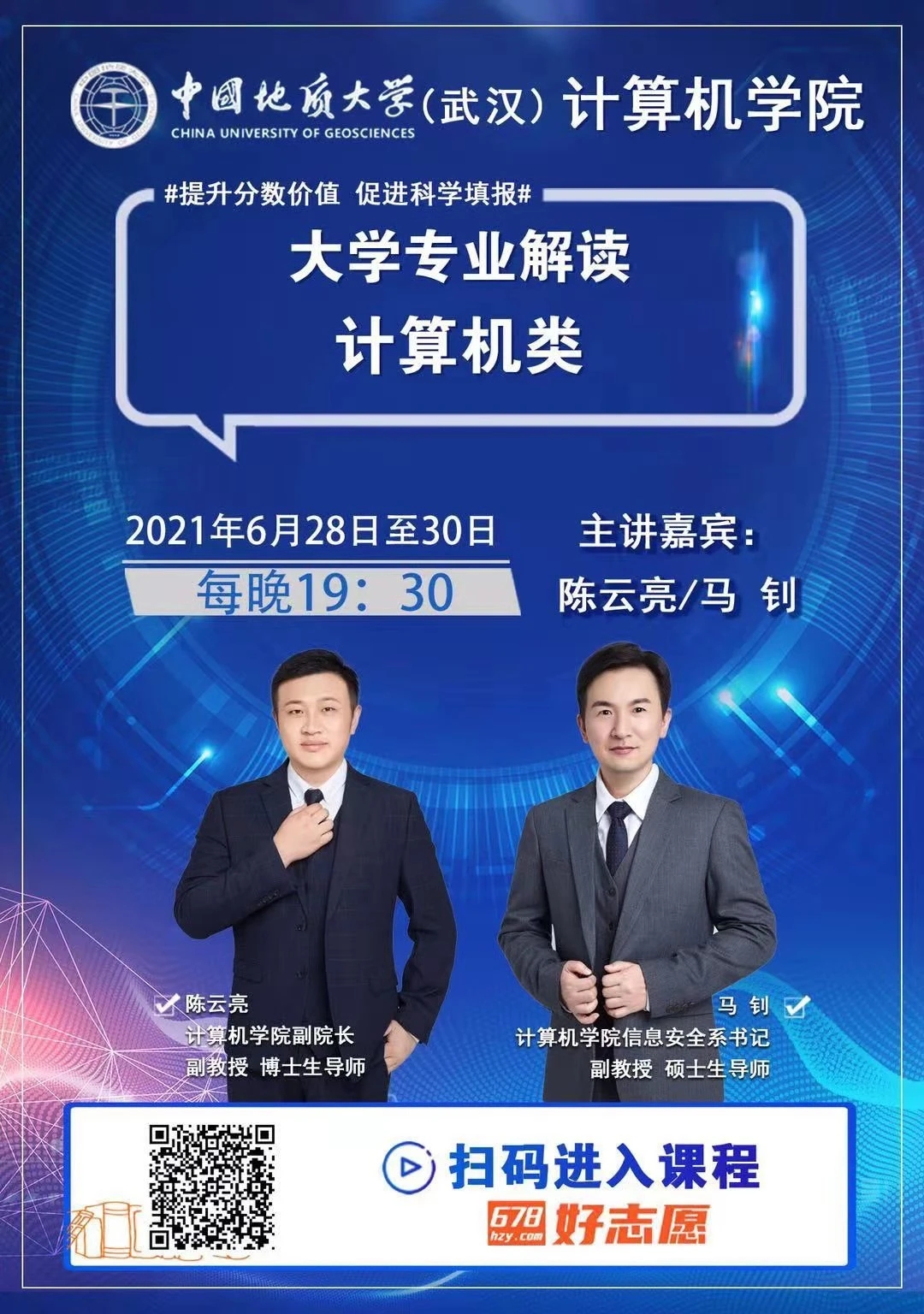 (通讯员孙彦钦)z6mg人生就是博专场招生宣讲和计算机专业解读直播将于6月20日15:30、19:00开讲。另外,自6月28日起至30日每晚19:30设有针对高考志愿填报的计算机专业解读直播,欢迎广大家长、学子扫码收看!