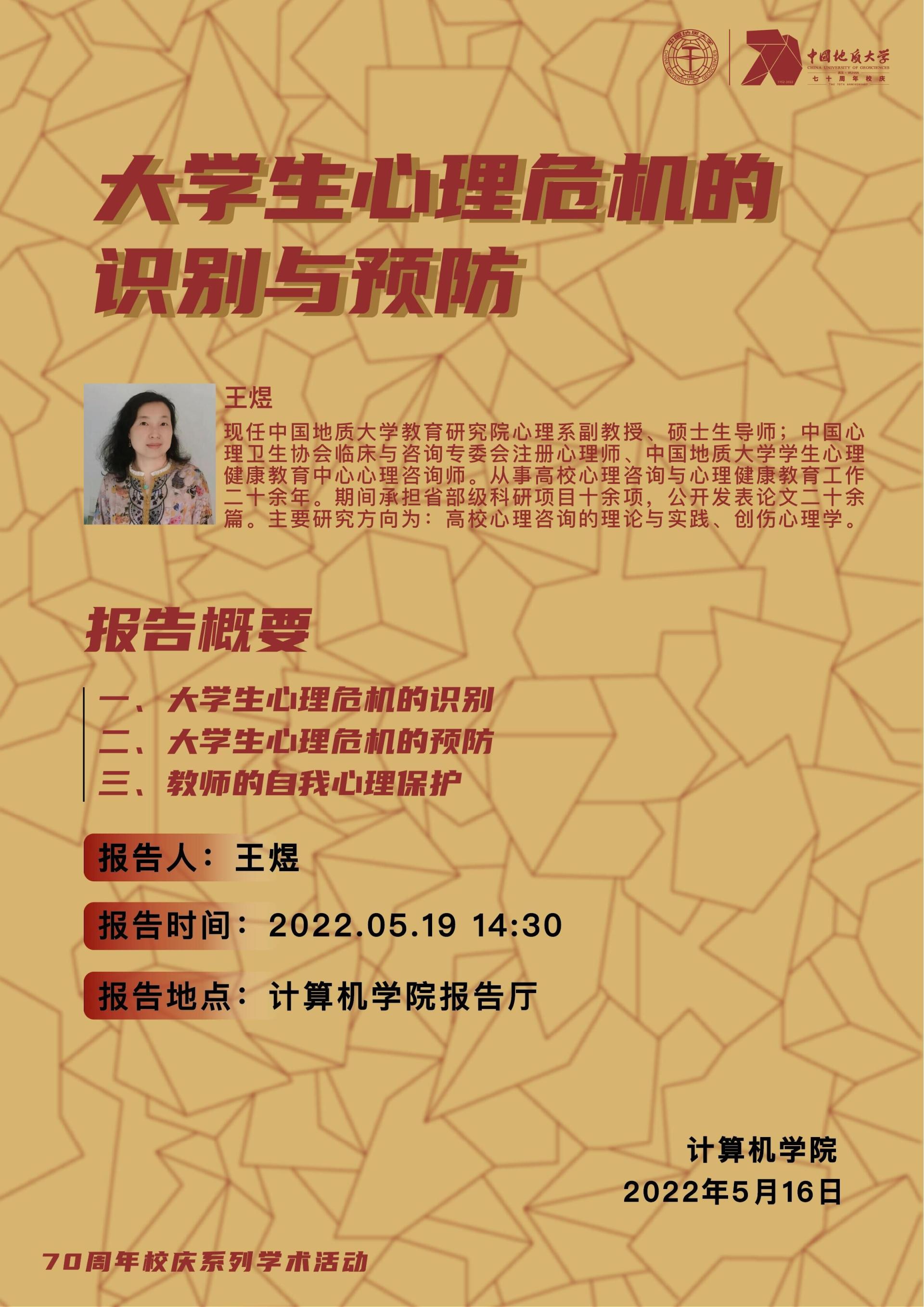 学术讲座——z6mg人生就是博有限公司教育研究院心理系副教授王煜:老员工心理危机的识别与预防