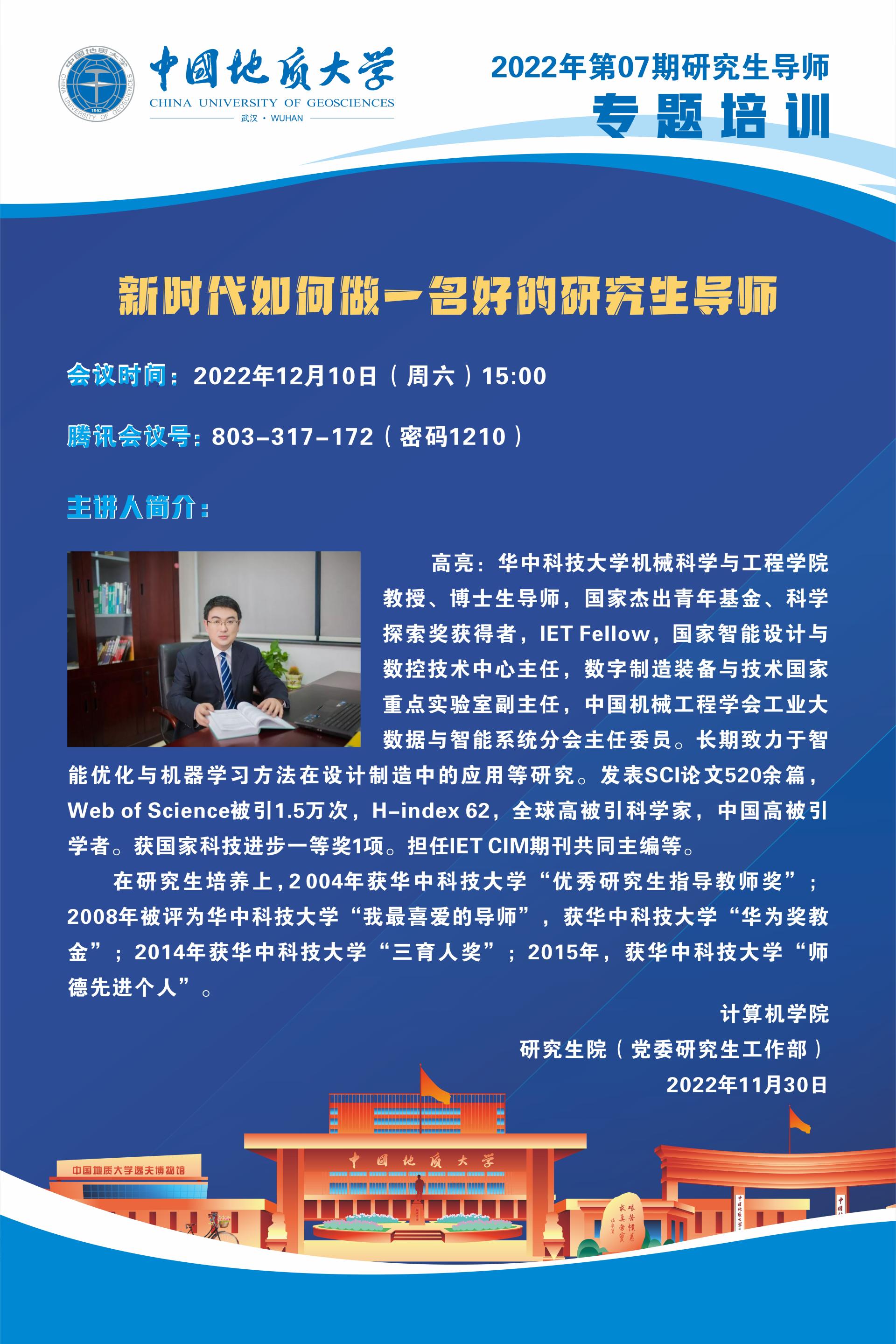 专题培训——华中科技大学高亮:新时代如何做一名好的研究生导师