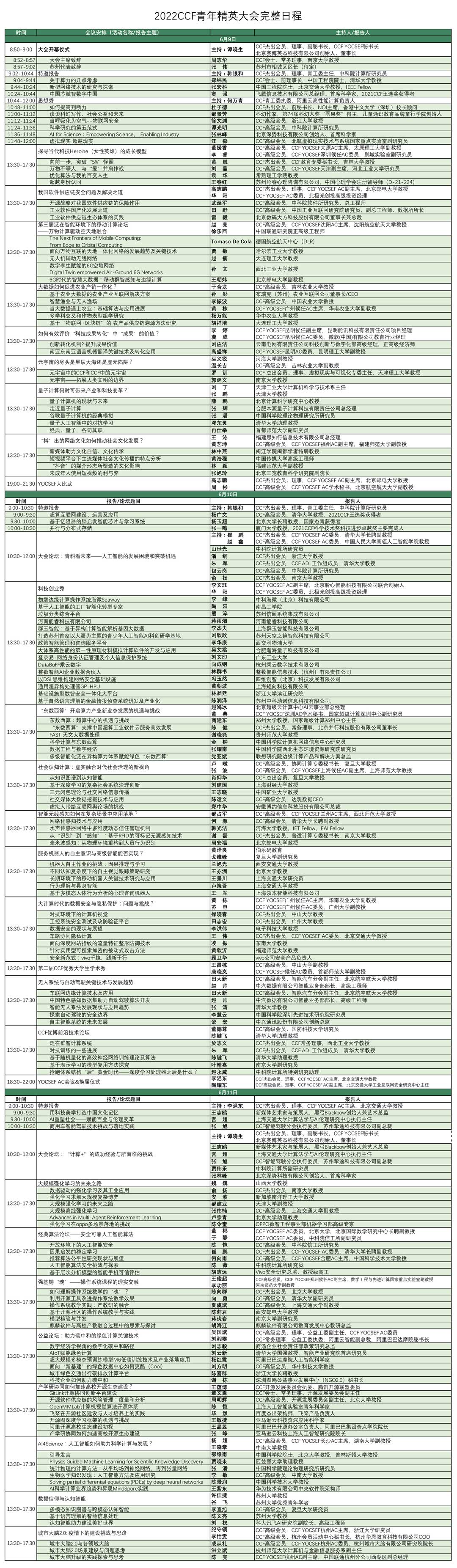 CCF前理事长、中国工程院院士、清华大学教授郑纬民,中国工程院院士、北京交大教授张宏科,“CCF王选奖”获得者、清华大学教授杨广文、飞腾信息技术有限公司总经理、首席科学家窦强博士,《北京折叠》作者、第74届科幻⼤奖“⾬果奖”得主郝景芳博士等,将出席会议并做报告分享。