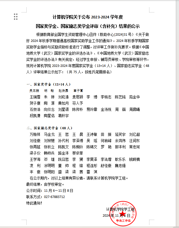z6mg人生就是博关于公布2023-2024学年度 国家奖学金、国家励志奖学金评审(含补充)结果的公示