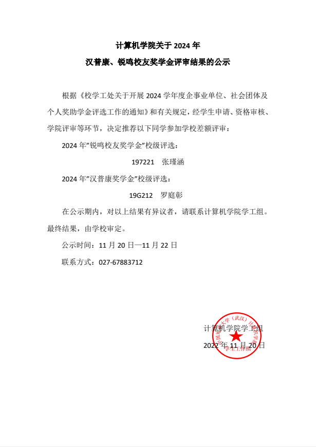 z6mg人生就是博关于2024年汉普康、锐鸣员工奖学金评审结果的公示
