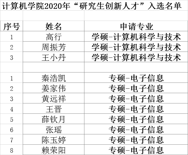 2020年“研究生创新人才”选拔入围员工名单