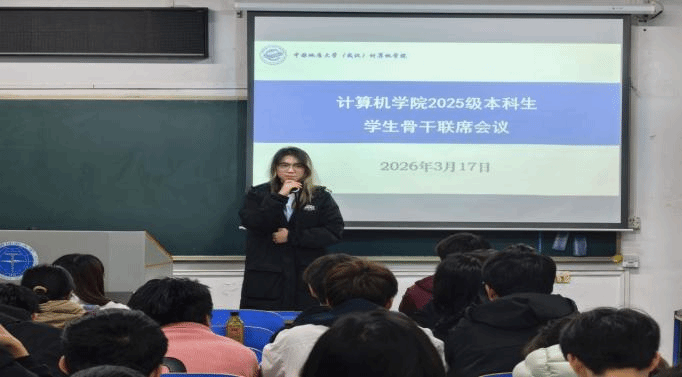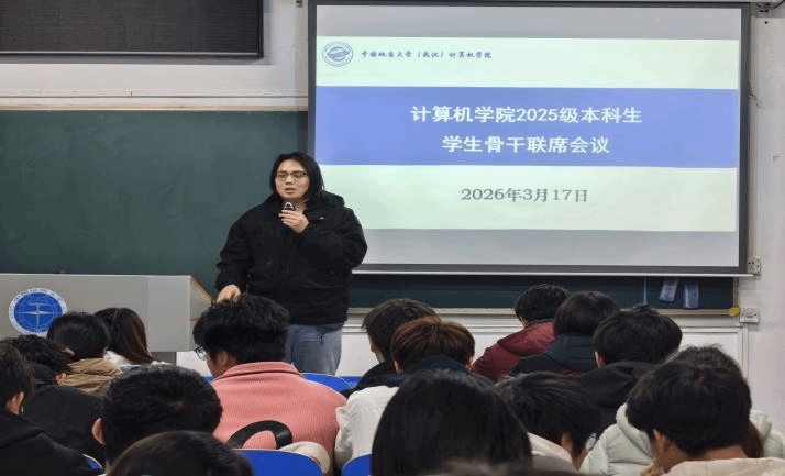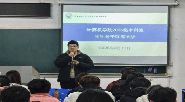 为搭建本科新生沟通桥梁,凝聚协作合力。2026年3月17日召开2025级本科生员工骨干培训会。2025级辅导员谭文博、兼职辅导员王超、2025级各班班长、团支书、学习委员、生活委员以及员工骨干成员参会,辅导员谭文博主持会议。