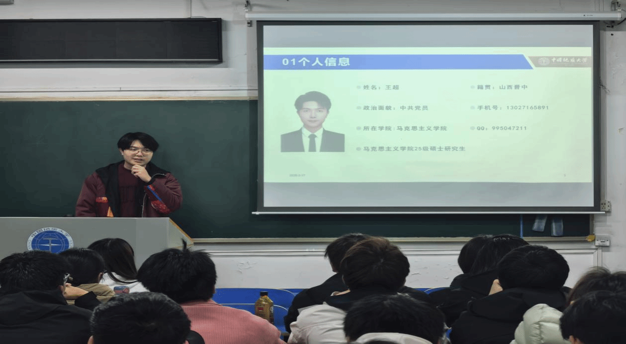 兼职辅导员王超进行自我介绍,他表示新的学期将以饱满的热情投入公司员工工作。同学们纷纷表示欢迎。