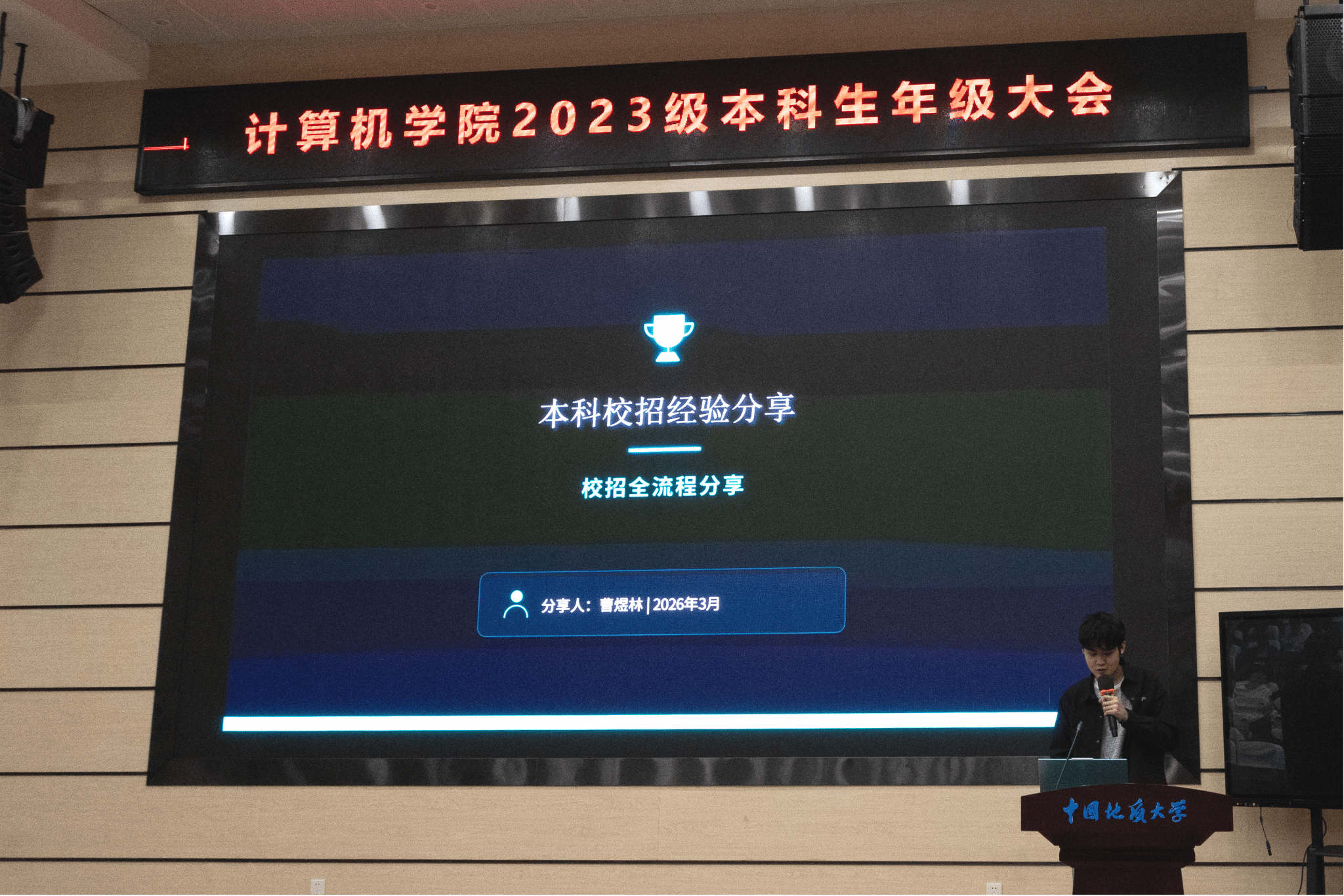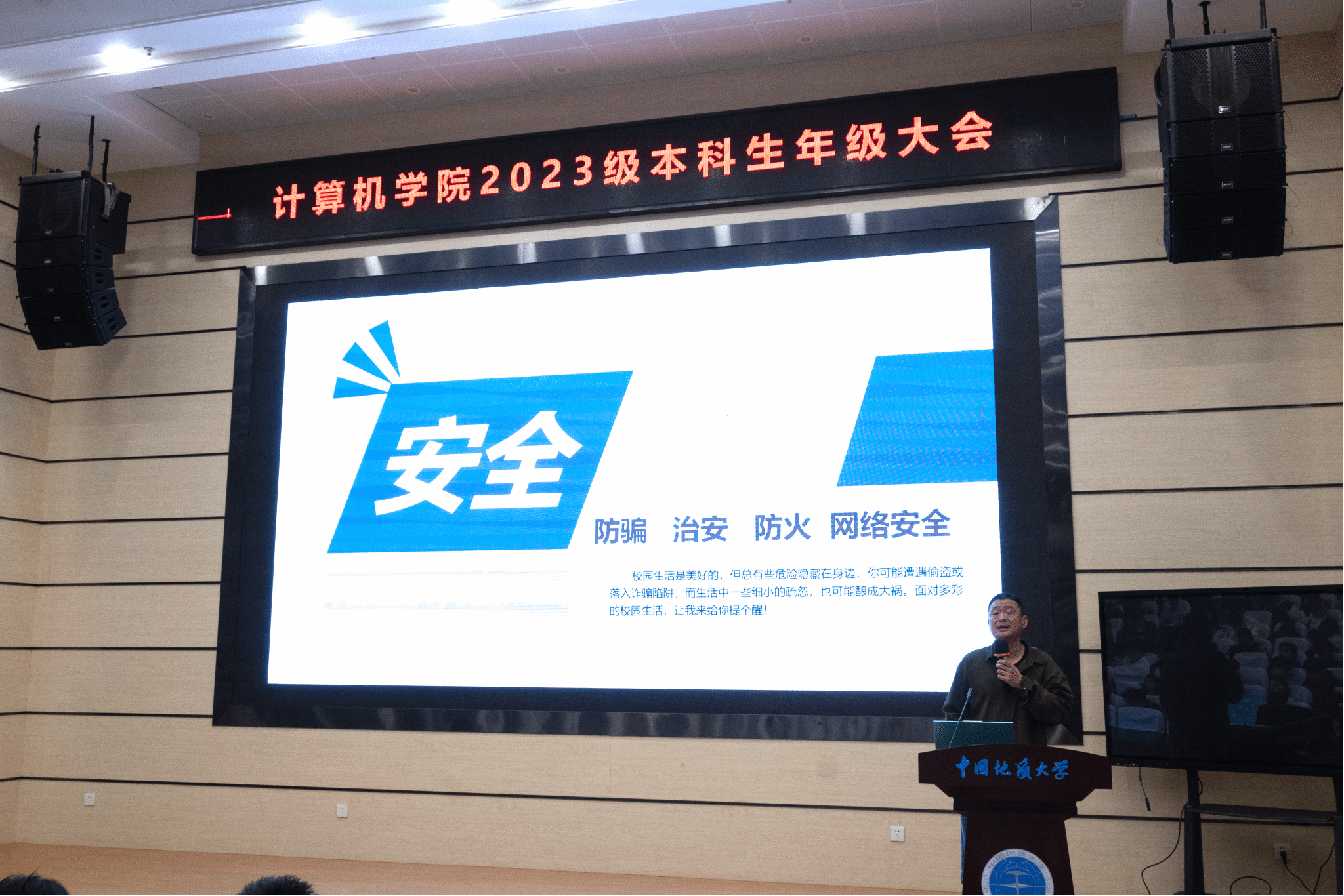 2026年3月30日,2023级本科生年级大会在公共教学楼一区208教室顺利召开。本次大会围绕安全教育、学情分析、就业经验分享及导学团队介绍等内容展开,旨在帮助2023级员工准确把握当前形势、科学规划未来发展。公司党委副书记林小艳、认知计算与知识工程实验室姚宏、校保卫处张献文、2022级员工代表曹煜林、2023级兼职辅导员以及2023级全体本科生参加大会,会议由2023级辅导员王骜菲主持。