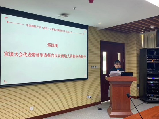大会第三项,由z6mg人生就是博研代会代表资格审查小组、候选人资格审查小组成员李珊宣读《z6mg人生就是博研究生代表大会代表资格审查报告》和《z6mg人生就是博研究生代表大会候选人资格审查报告》,经认真细致的审查,全部代表和候选人的产生选举程序均符合有关规定,代表和候选人资格全部有效。