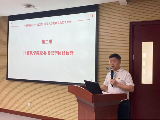 大会在雄壮的国歌声中拉开帷幕。会议伊始,计算机公司党委书记李国昌致辞。他指出研究生是公司科学研究、科技创新、学科发展的主力军,是院风学风的重要塑造者,而团委和研究生会是研究生自我管理、自我教育、自我服务的重要组织,能否发挥研究生科学研究、科技创新、学科发展主力军作用,浓厚院风学风,关键看团学骨干。对此,他希望团学骨干们要不断提高政治站位,坚定理想信念;要努力提供一流服务,围绕研究生成长和公司发展实际开展今后的工作;要对标一流,加强与兄弟公司、兄弟高校的交流,取长补短;要坚持团结,相互包容欣赏,心往一处想,劲往一处使;要严格自律,学会在大家的监督下工作,迎难直上,再创新高。
