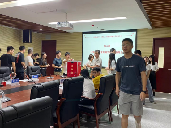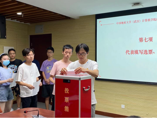 会议第六项,研究生代表填写选票,由总监票人、计票人进行选票统计。