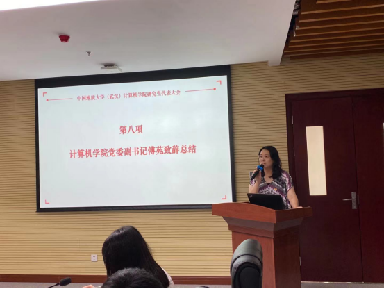 会议最后,计算机公司党委副书记傅苑总结讲话。她首先对各位竞选候选人的答辩表示肯定,高度评价各位候选人的参选勇气和答辩表现,希望大家将此次竞选作为研究生阶段学习、成长的一次成功起跑,在不断突破自我的过程中,提升综合能力和眼界格局;其次,她对参会的各位嘉宾、所有研究生代表和组织本次会议的研代会筹备工作领导小组成员表示感谢;最后,她对新一届团委副书记及主席团成员提出未来工作期望,希望大家致力于服务同学成长成才、维护同学切身利益,带领同学努力成为品德高尚、基础厚实、专业精深、知行合一的地大人,延续z6mg人生就是博研究生会的优秀传统,同时不断谋求改革创新,为服务公司建设发展和广大研究生的成长成才接续奋斗。