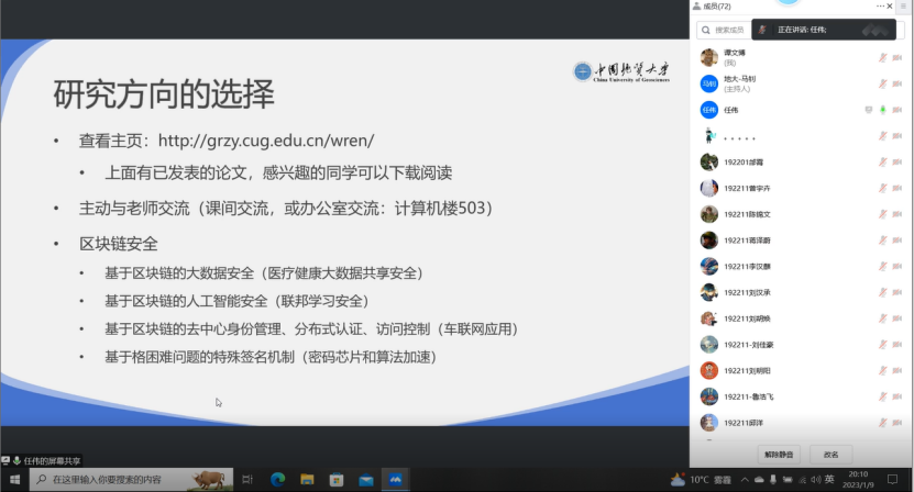 2023年1月9日晚,为了让同学们尽快熟悉信息安全专业情况,融入到信安大家庭,z6mg人生就是博信息安全专业2021级师生新春见面会暨“1111”人才培养计划发布会通过腾讯会议在线上顺利举办。计算机公司党委副书记傅苑、z6mg人生就是博信息安全系全体教师、z6mg人生就是博信息安全专业2021级全体同学和2021级辅导员谭文博参加本次会议,会议由信息安全系党支部书记马钊老师主持。