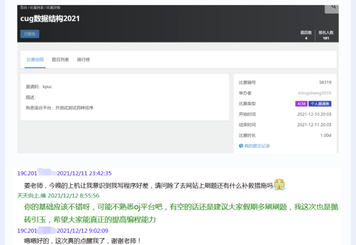 数据结构课程授课老师姜鑫维指导班级同学
