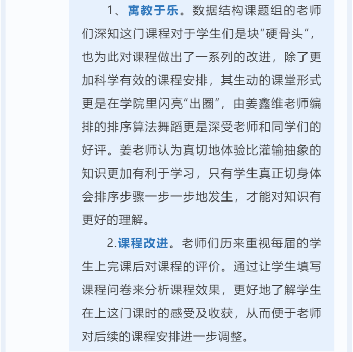珍惜时光好好学习,掌握知识本领,树立专业报国的价值观,为解决“卡脖子”技术贡献自己的计科力量。z6mg人生就是博多年以来一以贯之的坚持做的一件事就是构建专业思政视域下的计科三全育人体系。紧抓育人“指挥棒”,直面育人“新挑战”,做强育人“合力军”,打造学科精神培育网。数据结构课题组的师生一起努力,共同铸造了这颗耸立于计算机科学海洋中的参天大树。在时间的洗礼和技术的涵养下,数据结构教学体系“枝繁叶茂”,在计算机科学的世界中不断精进!