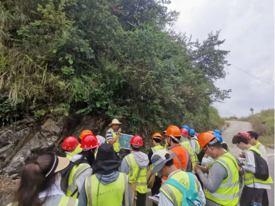 从白石桥到肖家大院,同学们一路走一路观察、记录,时而前进,时而停留,百步的距离却走过了沧桑巨变、斗转星移,走过了岩石和地层极其漫长的岁月。为了建立完整的地层变化体系,同学们在老师的讲述和带领下坐在路边绘制信手剖面图,提升自己的时空迁移能力和绘图能力。