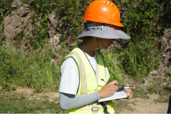 观察、讨论、描述、记录、收集、拍照,同学们拿上地质三大件,运用传统的野外地质研究方法,动眼、动口、动手,用放大镜观察岩石、用罗盘测量产状,集思广益、将今论古。