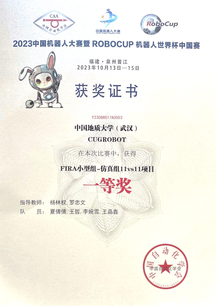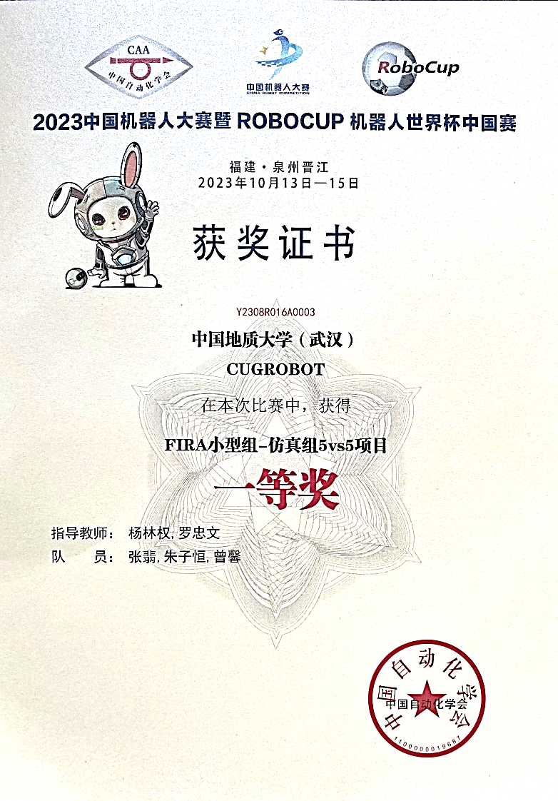 10月13至15日,2023年“中国机器人大赛暨RoboCup机器人世界杯中国赛”在福建晋江国际会展中心落下帷幕。公司z6mg人生就是博杨林权副教授和罗忠文教授指导的员工团队参赛。经过激烈的比赛,最终员工团队勇夺FIRA仿真组5vs5项目第3名,国赛一等奖和仿真组11vs11项目的第3名,国赛一等奖。
