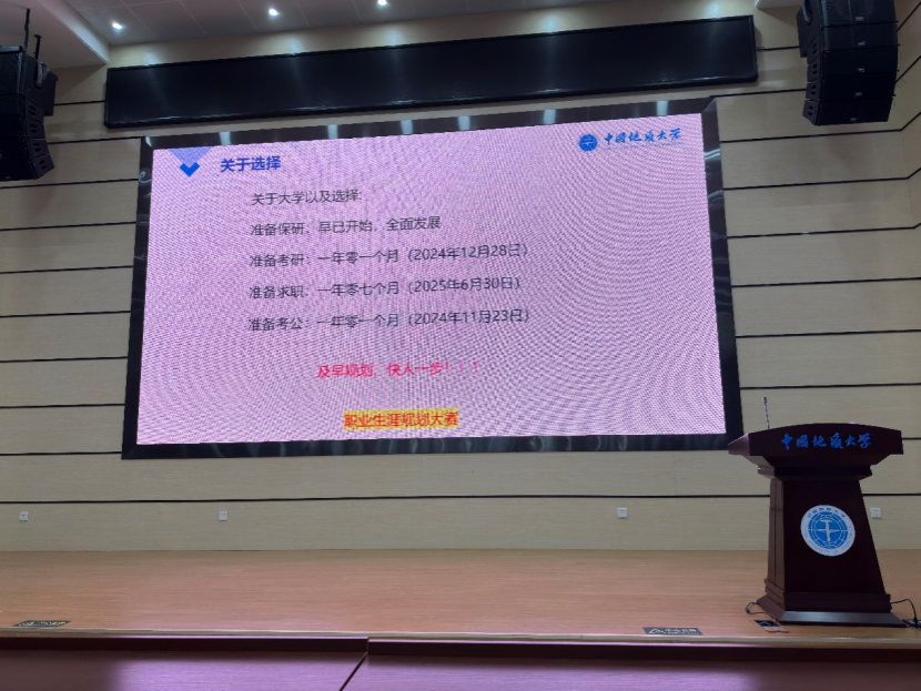 大会首先以视频的形式回顾入学一年多以来同学们在校期间的精彩瞬间。接着,王太茂以当下专业分流为契机,明确本次会议主题为:选择与当下。针对分流后同学们普遍在专业发展等方面存在的焦虑和迷茫,王太茂展示了各专业近两届的考研保研就业等去向情况,用真实数据为同学们今后的职业规划做参考。同时,王太茂针对保研、考研、考公、就业等去向,辅以具体的流程、详实的事例进行了深入分析,并强调行动的重要性。他谈到,当下就是最好的选择,提升个人能力,努力做到全面发展才是现阶段的应有之义。