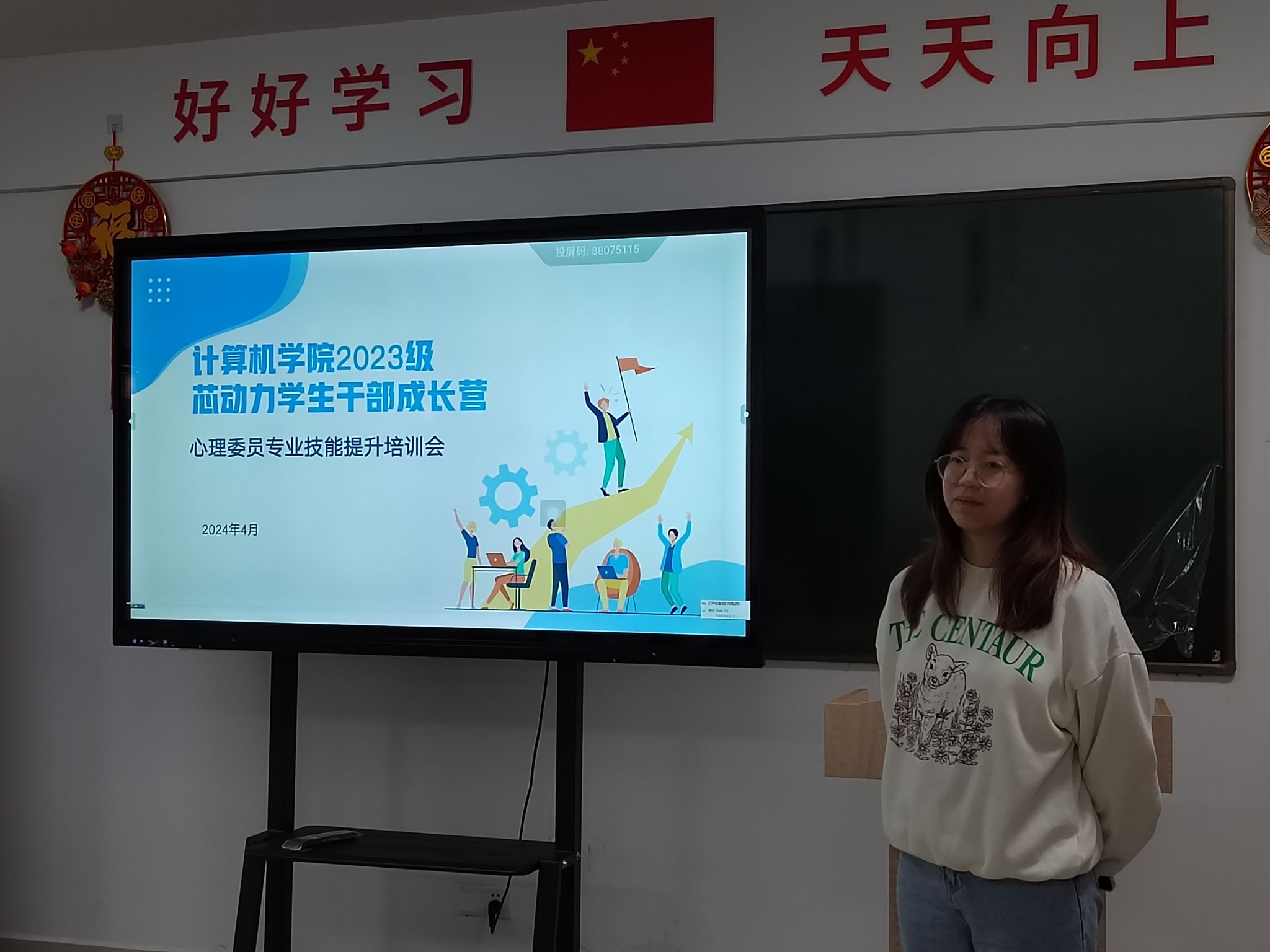 为不断提高心理委员的工作能力,进一步发挥心理委员在心理健康教育中网格员的重要作用,提高公司心理育人成效,4月8日中午12点,2023级芯动力员工干部成长营暨心理委员专业技能提升培训会在一站式服务大厅103顺利召开,大会由兼职辅导员武玥主持,2023级辅导员闫维蓉老师,2023级全体心理委员参加。