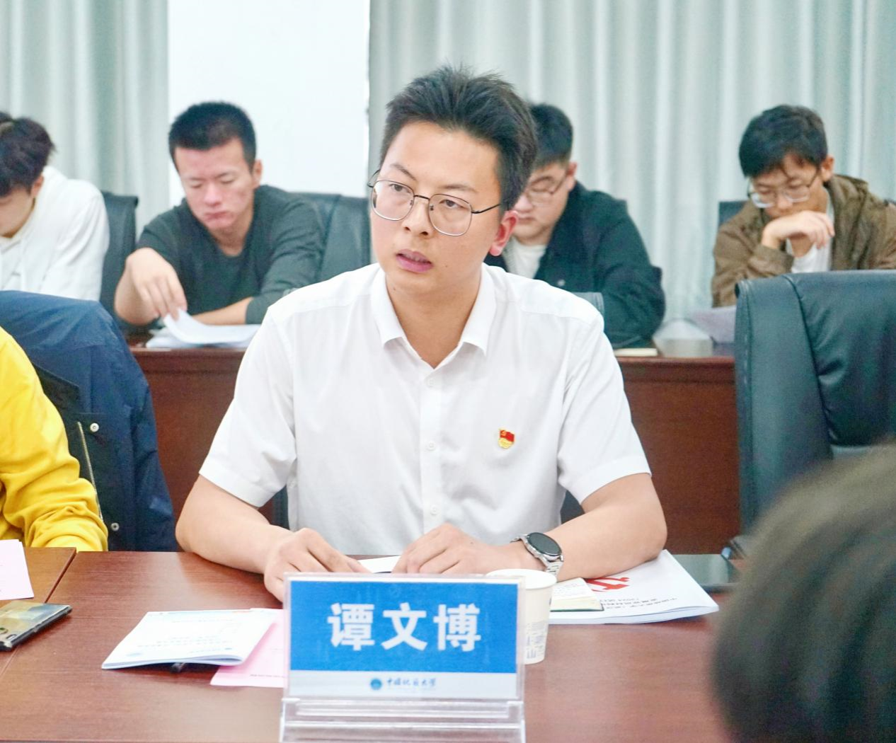 党建辅导员谭文博带领全体党员重温入党誓词。