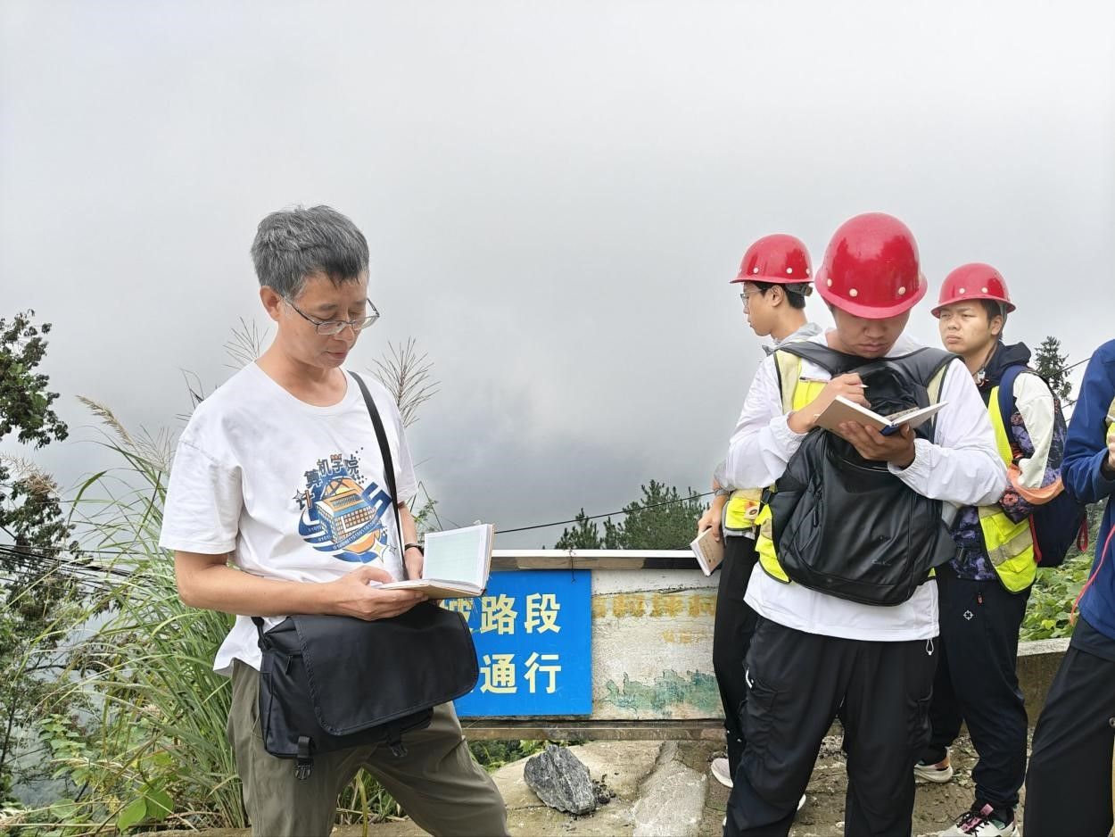 我们分组行动,有人手持地形图,在雨中仔细辨认地形;有人使用罗盘测量岩层产状,雨水打湿了野簿,我们便用塑料袋小心包裹;有人采集岩样,即使手指被雨水冻得发麻,也依然认真记录岩样信息。大家相互搀扶,相互提醒,没有人抱怨,没有人退缩。当我们成功在地形图上定出多个观测点,完成地质数据采集时,雨中的山野仿佛也为我们送上了无声的喝彩。