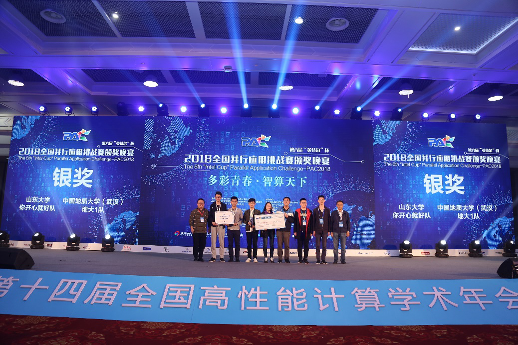 10月20日,国内两大超算赛事——第六届全国并行应用挑战赛(PAC2018)和第二届国产CPU并行应用挑战赛(CPC2018)在青岛国际会展中心落下帷幕。公司z6mg人生就是博高性能计算导师团队(王力哲、张锋、武进霞、董理君)联合指导的两支代表队,从全国四大赛区168支参赛队伍中突围进入16强决赛,与来自清华、中科大、中科院、上海交大、中山大学、山东大学、中国海洋大学、香港中文大学等单位的决赛队伍同场竞技,最终地大之光超算1队(雷辛亚、郭睿欣、马永耀、薛尔康)在PAC优化赛道中以季军的成绩获得银奖和1万元奖金;地大之光超算2队(李瑞、张晓涵、董宇、姜家伟)以全国16强的成绩分获CPC和PAC中南赛区一等奖和4千元奖金。