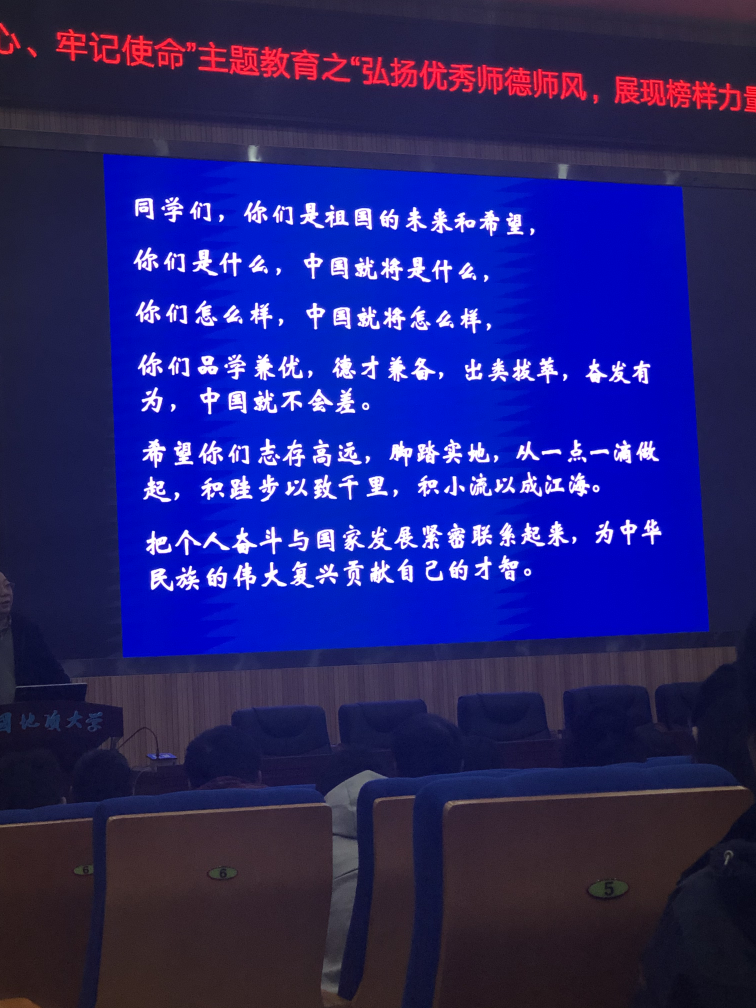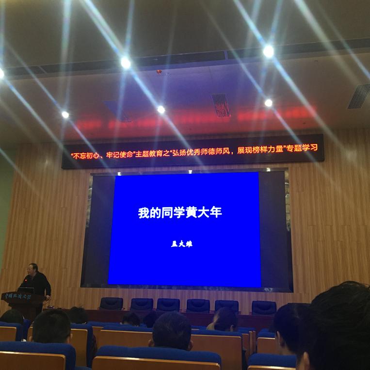 接下来,孟大维教授就黄大年教授的人格魅力进行讲述。1982年1月15日,黄大年在给同学的毕业赠言中写道:“振兴中华,乃我辈之责”。1988年,黄大年加入中国共产党,他在入党志愿书中写道:若能做一朵小小的浪花奔腾,呼啸着加入献身者的滚滚洪流中,推动历史向前发展,才是一生中最值得骄傲和自豪的事情。黄大年在世时,也常与同事谈起邓稼先等老一辈科学家,并曾在朋友圈里提出“黄大年之问”。