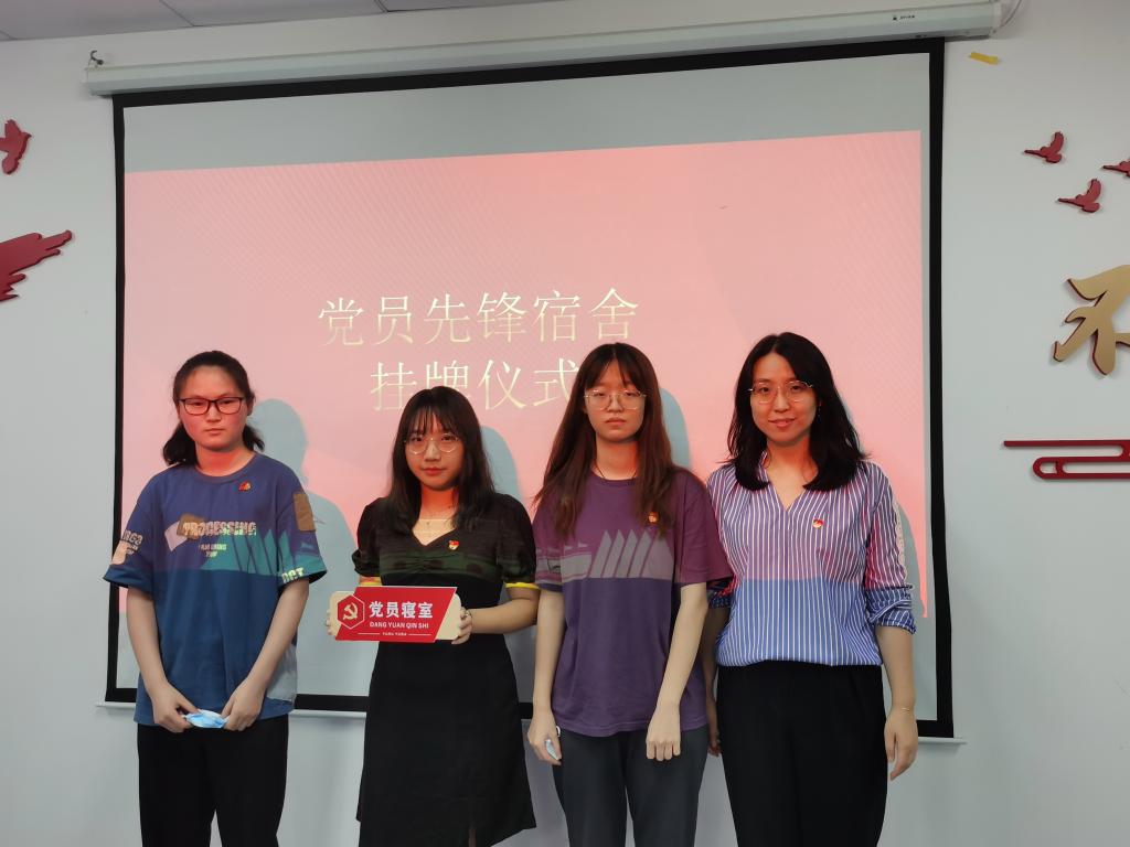 傅苑为先进党员宿舍授牌。公司二组团四栋316宿舍多次获评文明宿舍、最美宿舍、百佳宿舍,宿舍成员平均学分绩点超3.8,且为全院300余间本科宿舍中唯一的全党员宿舍,在广大同学中起到了榜样作用。
