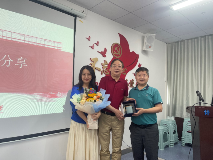 支部为吕军老师举行了简朴温馨的荣体仪式。院直支部党员精心制作了卡片,傅苑同志代表院直同志们为吕老师献上了鲜花。