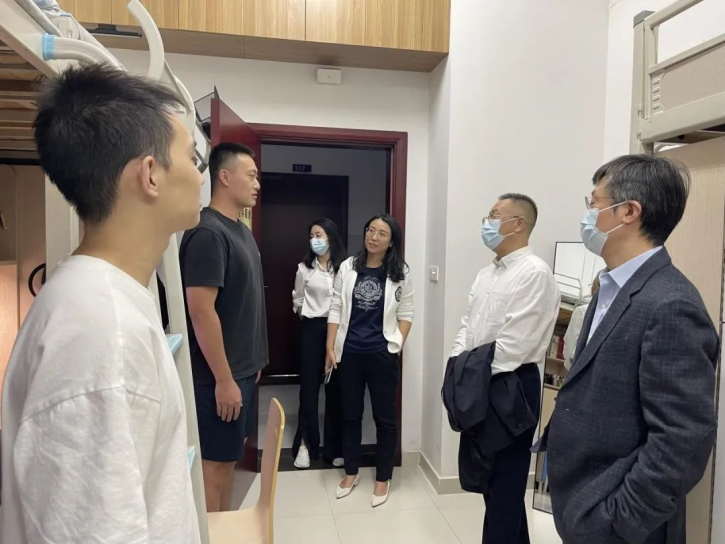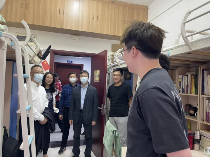 唐忠阳一行首先查看了老兵宿舍的住宿条件,对宿舍的内务卫生提出了表扬,表示老员工的内务卫生是老师们都关心的问题,希望同学们继续保持良好的作风,同时带动周围其他同学形成良好习惯。唐忠阳仔细询问了每一位同学的职业规划,并对大家继续深造和考公的规划进行了深入了解。最后勉励同学们要继续保持退伍军人的志气和本色,不管走到哪都不要忘记“根在地大”,踔厉奋发,为祖国发展贡献地大力量!