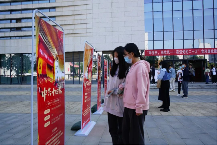 16日上午,公司策划制作的“党风廉政建设”宣传展板,中国共产党历次党代会重点内容学习海报以及“喜迎二十大,踔厉奋发向未来”祝福寄语墙在公司一楼展出,引发广大师生的驻足学习、热议。其中,历次党代会学习海报以色彩鲜明的图文形式,生动描绘了从党的一大到十九大的历史背景和意义,启发师生们切身感受“学党史,强党风”的深刻内涵。在“喜迎二十大,踔厉奋发向未来”祝福寄语墙上,师生们留下了“凝心聚力新时代,团结聚力新征程”、“时间砥砺前行,岁月见证初心”、“青春向党,不负众望”的美好祝福和铮铮誓言。