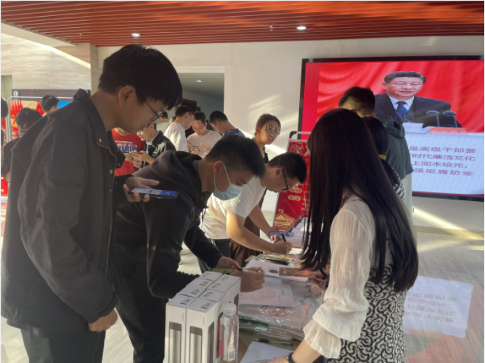 集团“样板党支部”z6mg人生就是博博士生党组织部牵头负责的“党风廉政知识竞答”活动,通过现场扫码扫码答题赢取公司文创产品的形式,引导广大师生学习党风廉政建设理论知识、了解党风廉政建设的重要意义,增强师生爱院荣院教育。活动吸引了近300名师生参与互动答题,共有23名师生获得满分成绩。