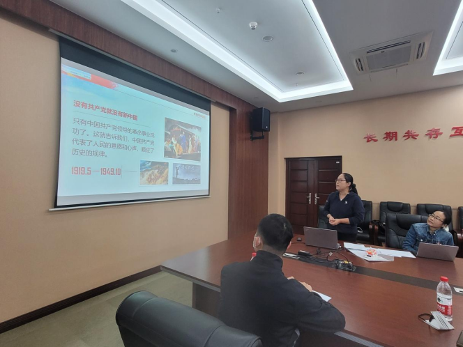 大数据系党支部支部宋维静以“志不强者智不达言不信者行不果——习近平谈治国理政第四卷坚持敢于斗争部分”为题,分享了近代以来中国人民敢于斗争、善于斗争的伟大历程。