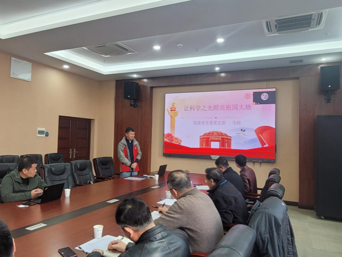 信息安全系党支部书记马钊以“让科学之光照亮祖国大地”为题,分享了自己观看公司原创话剧《大地之光》的体会,回顾了李四光先生的感人故事,强调我们要弘扬爱国主义精神,自觉落实立德树人根本任务,学做大先生。
