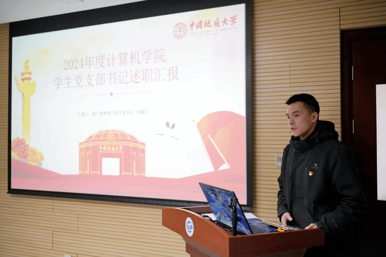 研究生专硕第六党支部书记向晨风谈到:今天很荣幸参加公司党支部书记述职大会,很荣幸上台汇报工作。这不仅是工作汇报,更是向其他党支部书记学习的宝贵机会。教职工支部工作部署有条不紊、成果丰硕。本科生、研二和研三支部百花齐放,各有建树。作为聆听者,我不断学习着他们的管理方法和成熟经验。虽然研一党支部因为成立时间较短,成果不够突出,但在公司党委的正确领导和全体支部成员的积极配合下,我们一定能有所成就。我们作为党支部书记,肩负着同学们的信任,应该切实担负起支部组织管理工作的责任。公司领导们的认可和夸奖是一种鞭策,期许和鼓励着我们带领党支部走向新的未来。