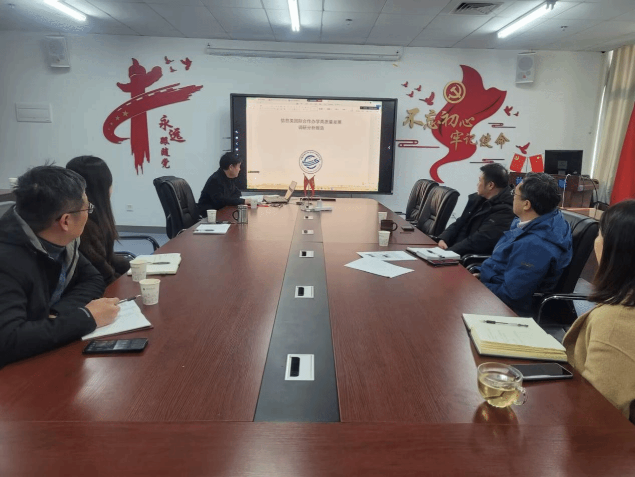 副经理陈占龙以“信息类国际合作办学高质量发展”为题,分享了其他高校信息类中外合作办学项目的典型经验与模式,并结合公司实际加强国际合作的建议。