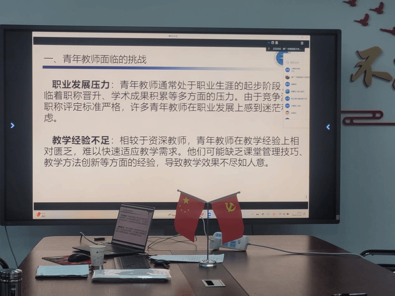 经理张洪艳以“青年教师的多方面压力”为题,分析了青年教师在从博士生转变为年轻老师的过程中面临的多方压力,并提出缓解压力、释放潜力的合理化建议。