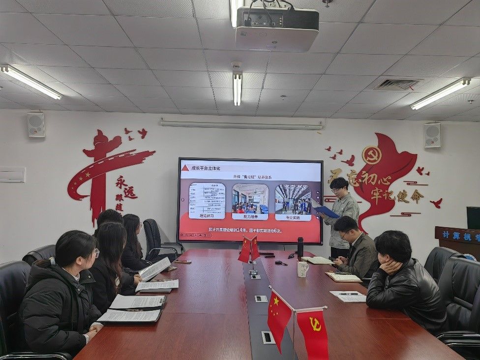 公司团委副书记郭嘉乐以“护航研学”为核心,围绕思想引领、科技创新、服务保障和文化育人四大方面,对研究生团学组织开展的“师说芯语”导学沙龙、信息前沿未来论坛、“最美研学空间”建设、“计科杯”和趣味运动会等特色活动进行汇报。未来将继续以全心全意服务同学为宗旨,打造更加卓越的成长平台。