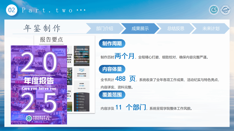 办公室作为团学组织的“中枢枢纽”,统筹协调各项行政工作,累计组织团委员工会会议8次、整理会议记录8份,审核活动场地预约600余次,编撰488页年鉴全书,打造特色活动,全力保障团学工作高效有序运转。